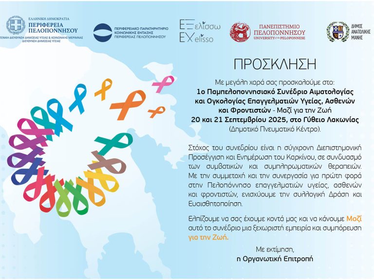 Αντιμετωπίζοντας αυτήν την πρόκληση, διοργανώνεται, το σαββατοκύριακο 20-21 Σεπτεμβρίου, στο Γύθειο, το 1ο Παμπελοποννησιακό Συνέδριο Αιματολογίας και Ογκολογίας, με τίτλο «Μαζί για την Ζωή», για επαγγελματίες υγείας, ασθενείς και φροντιστές. Σκοπός του συνεδρίου είναι να δημιουργήσει έναν ουσιαστικό και διαρκή διάλογο μεταξύ όλων των εμπλεκόμενων φορέων, προκειμένου να ανταλλάξουν επιστημονικές γνώσεις, εμπειρίες και βέλτιστες πρακτικές.