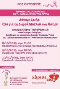 Ενημέρωση για την εθελοντική δωρεά μυελού των οστών στο Πανεπιστήμιο Μυτιλήνης από την καθηγήτρια κα Πάολα Ρόχας του Ε.Β.Ε.Υ. του Πανεπιστημίου Πελοποννήσου καθώς και εγγραφή με δειγματοληψία σάλιου σε νέους εθελοντές δότες μυελού των οστών από το σύλλογο ΡΟΖ ΔΥΝΑΜΗ σε συνεργασία με το ΚΕΔΜΟΠ-Χάρισε ζωή.