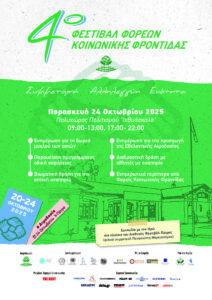 Η Περιφερειακή Ομοσπονδία Ατόμων με Αναπηρία Δυτικής Ελλάδας και Νοτίων Ιονίων Νήσων (ΠΟΜΑμεΑ Δ.Ε & Ν.Ι.Ν) προγραμματίζει τη διεξαγωγή του 4ου Φεστιβάλ Φορέων Κοινωνικής Φροντίδας Τριτη 21 Οκτωβρίου 2025, στο Κλειστό Δημοτικό Θέατρο στη Ζάκυνθο, και Παρασκευή 24 Οκτωβρίου στην Ιχθυόσκαλα στην Πάτρα. Σκοπός της φετινής διοργάνωσης είναι να ενισχυθεί η ενημέρωση της τοπικής κοινωνίας και […]